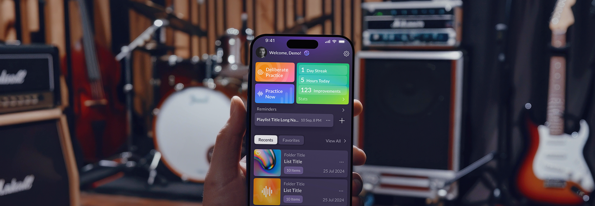 Create practice playlists or make it up as you go. Modacity™ will show you how much time you’re spending, track your progress, and even help you set reminders.